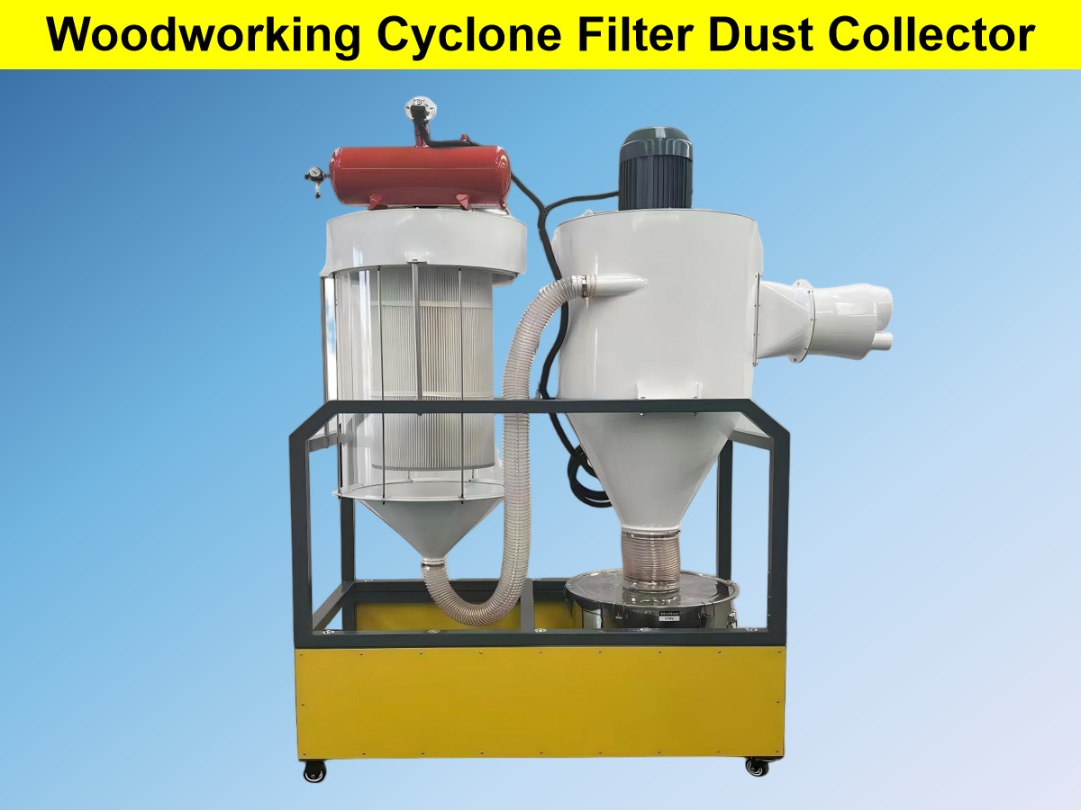 সাইক্লোন ফিল্টার-টাইপ কাঠের ধুলো সংগ্রাহক হল ঘূর্ণিঝড় বিচ্ছেদ এবং ফিল্টার কার্টিজ পরিস্রাবণের সংমিশ্রণ। তারা সূক্ষ্ম ধূলিকণা ফিল্টারিং ফিল্টার কার্টিজ ধুলো সংগ্রাহকদের উচ্চ-নির্ভুল বৈশিষ্ট্যের সাথে উচ্চ-ঘনত্বের মোটা ধুলো পরিচালনার ক্ষেত্রে ঘূর্ণিঝড় ধুলো সংগ্রাহকদের সুবিধাগুলিকে একত্রিত করে। কাঠের কাজের ওয়ার্কশপে কাঠের ডাস্ট এবং কাঠের গুঁড়ার বিস্তৃত কণা আকারের বিতরণের জন্য বিশেষভাবে ডিজাইন করা হয়েছে, তাদের ধুলো অপসারণের দক্ষতা একক-ইউনিট সরঞ্জামের তুলনায় অনেক বেশি।
